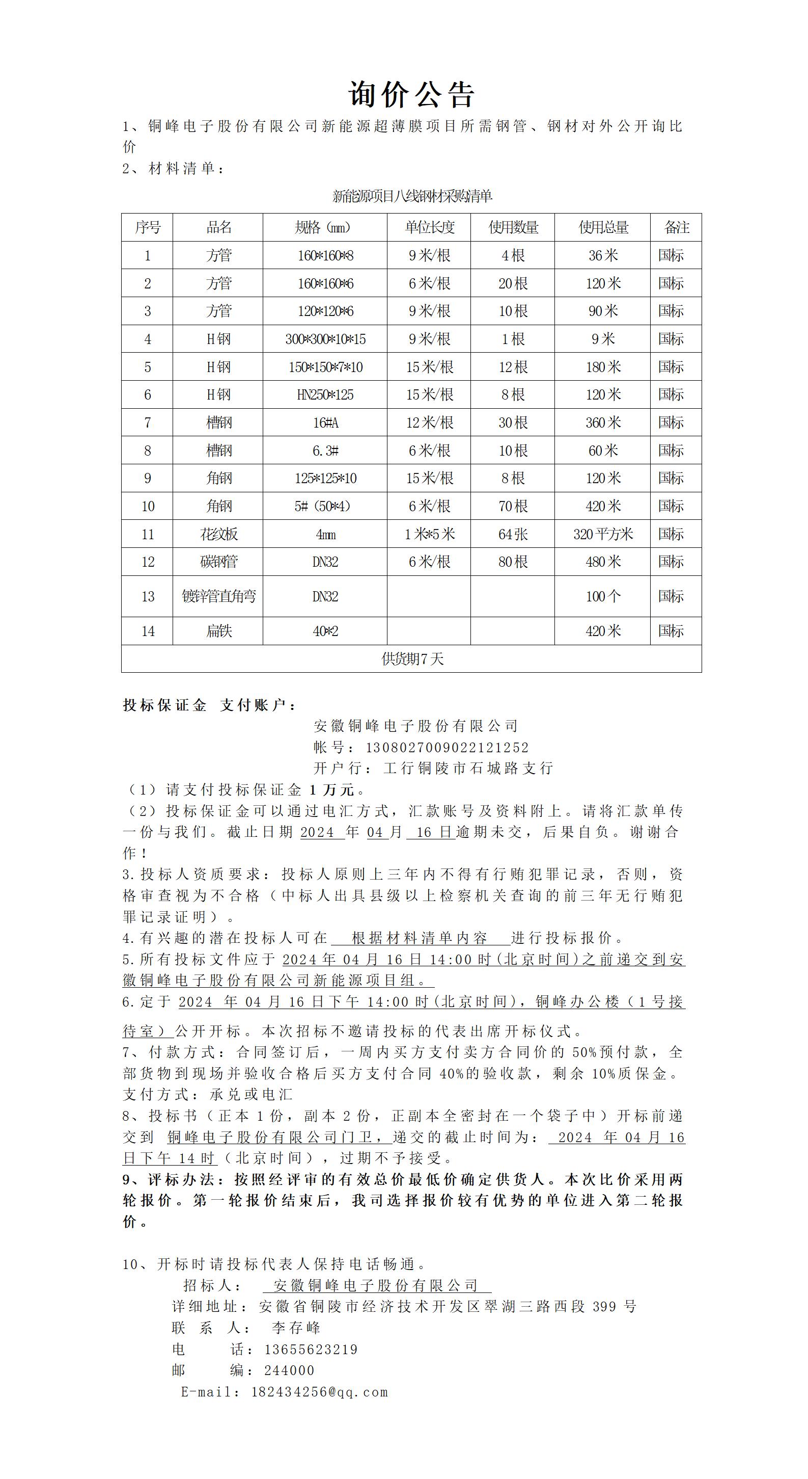 英国威廉希尔公司官网股份有限公司新项目八线钢材询价公告