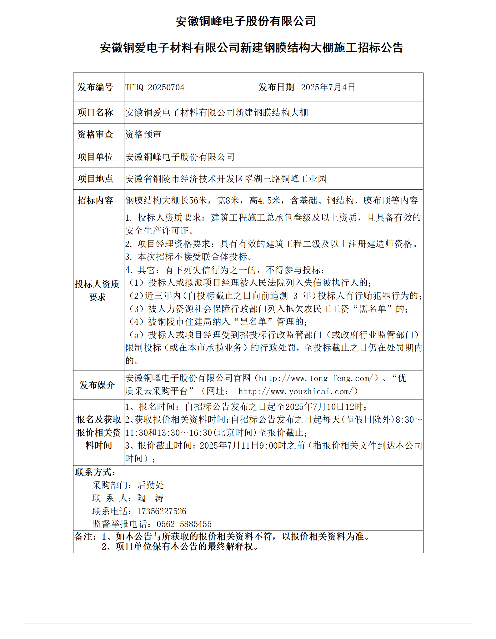 英国威廉希尔公司官网 (安徽铜爱电子材料有限公司新建钢膜结构大棚招标公告)_01