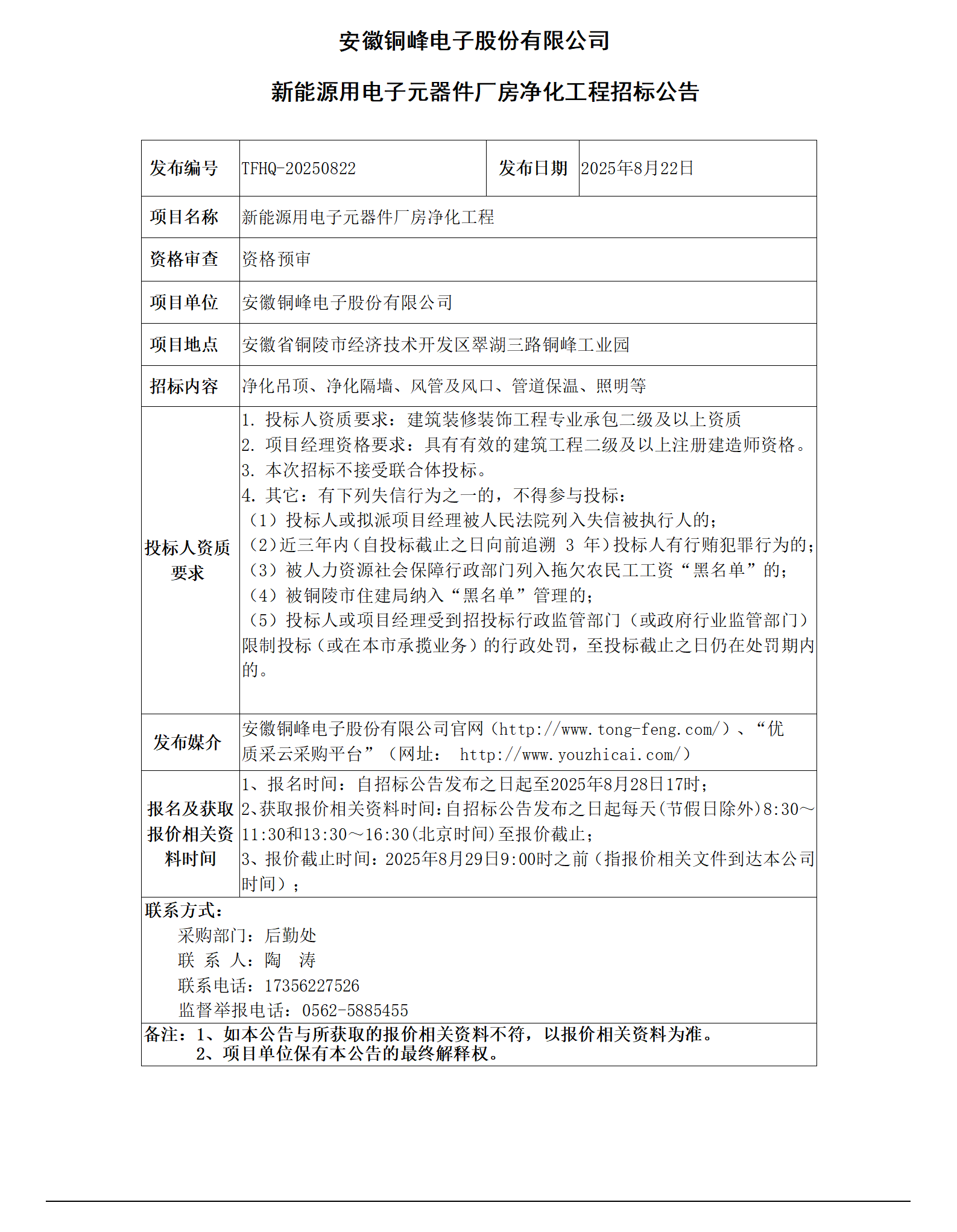 英国威廉希尔公司官网 (新能源用电子元器件厂房净化工程 招标公告)_01