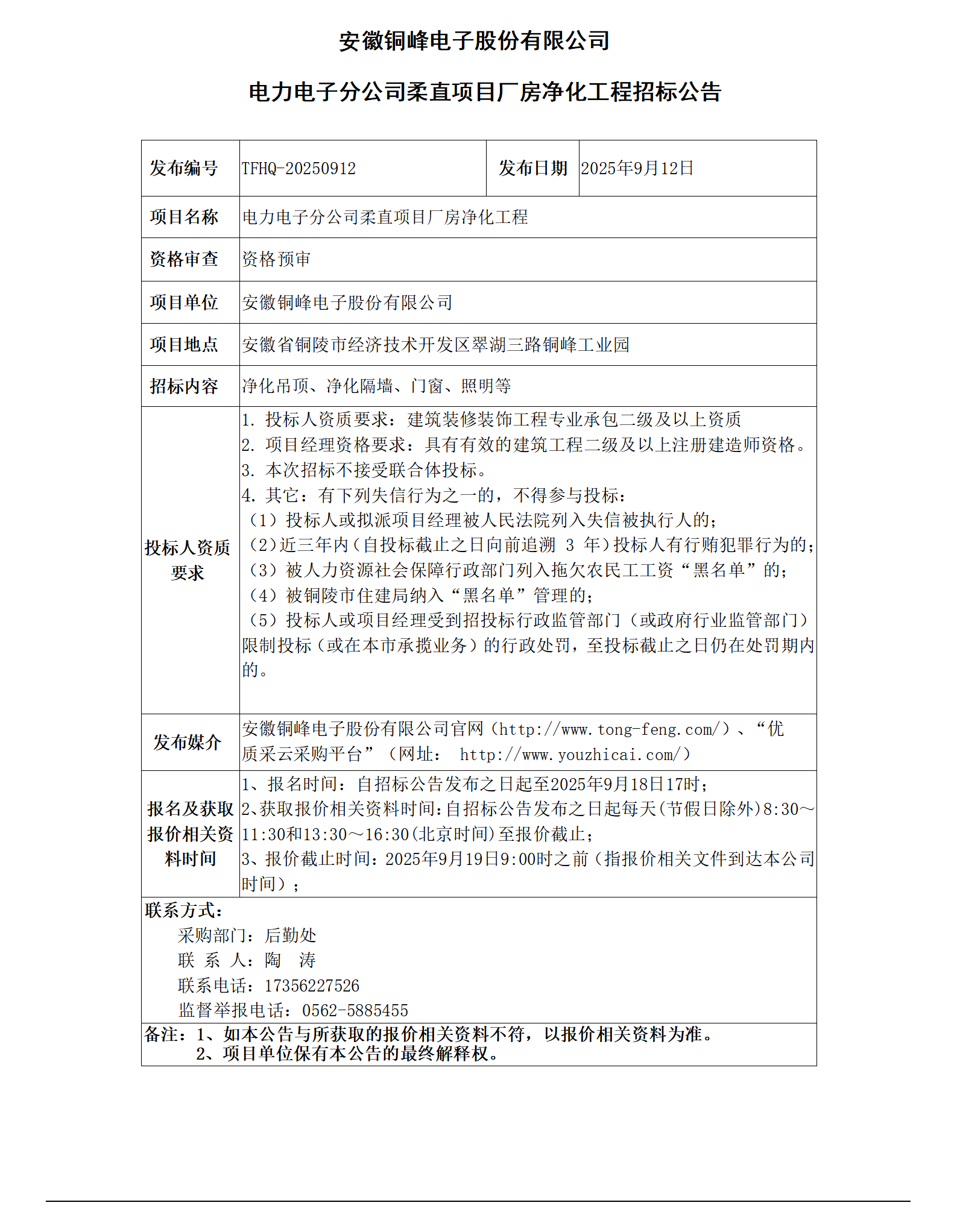 01英国威廉希尔公司官网 (电力电子分公司柔直项目厂房净化工程 招标公告)_01