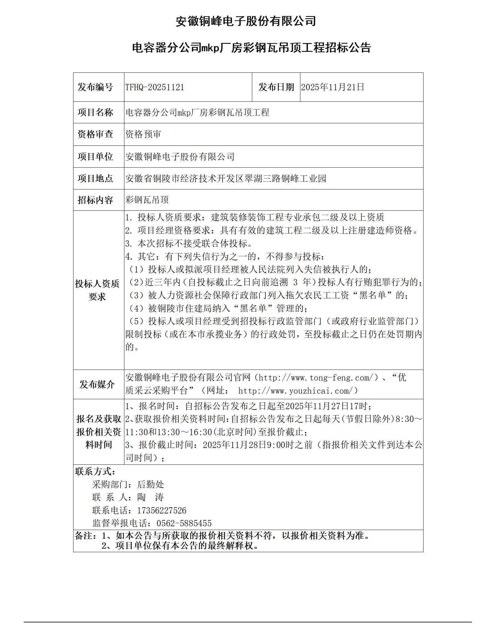 英国威廉希尔公司官网 (电容器分公司mkp厂房彩钢瓦吊顶工程 招标公告)_01