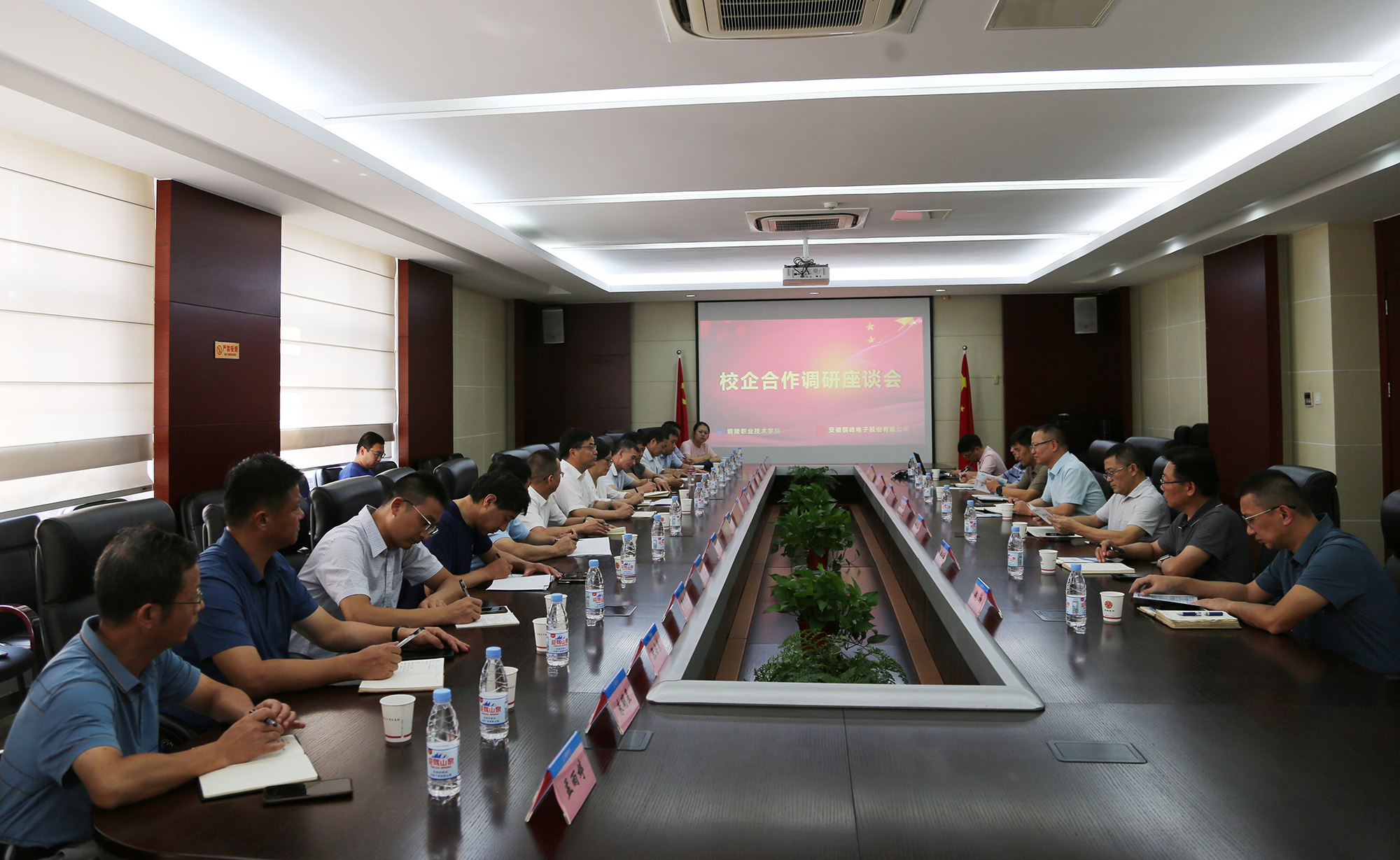 8月24日下午,铜陵职业技术学院党委书记、市发改委主任凌勇,党委副书记、院长凌涛,党委副书记徐文等学院领导和相关职能处室负责人来公司开展校企合作调研座谈活动。公司党委书记、董事长黄明强,常务副总经理、总工程师储松潮,副总经理、财务总监郭传红,党委副书记、纪委书记、工会主席潘世宇及相关职能部门负责人陪同调研。