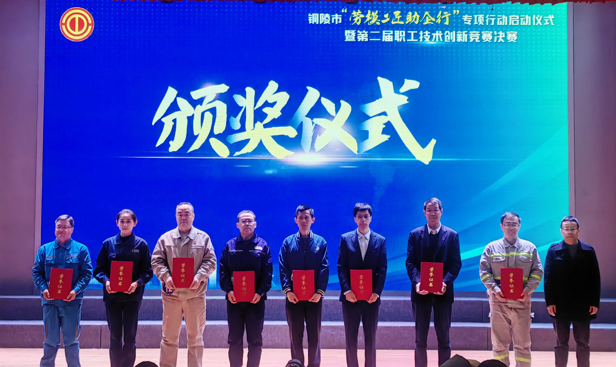 12月6日上午,铜陵市“劳模工匠助企行”专项行动启动仪式暨第二届职工技术创新竞赛决赛在市铜官区文化馆举行。市人大常委副主任陈昌生宣布开赛,市人民政府副市长杨文萍致词。共有来自全市各县区和相关单位的4项“金项目”、10项“金点子”和14项“金成果”进入决赛。薄膜分公司张志东携《BOPP薄膜生产线纵拉机间隙精准定位系统》“金成果”项目参赛并荣获三等奖。
