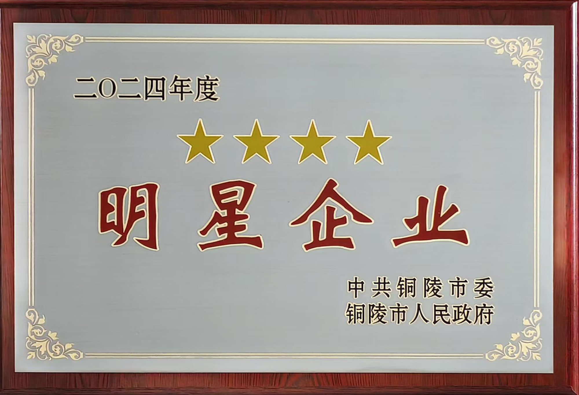 2月6日上午,铜陵市在市行政会议中心隆重召开“新春第一会”——全市重大项目提升年暨营商环境深化年动员大会。会上表彰了2024年度全市突出贡献单位、星级企业(其中工业类五星企业6家、四星企业4家、三星企业14家)、单项贡献奖(其中税收增长贡献奖8家)等先进集体和先进个人。公司首次获评“工业四星企业”,并获“税收增长贡献奖”,这是公司继多次获评“工业三星企业”后的又一新突破。公司总经理鲍俊华代表公司出席领奖并在主席台就坐。