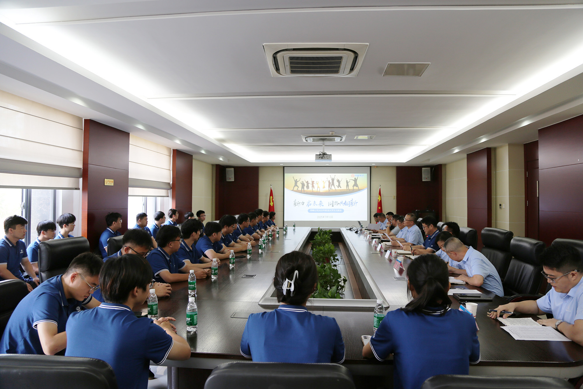 7月10日上午,公司办公楼一楼大会议室内青春洋溢、希望升腾,以“新力启未来、同路共铜新”为主题的2025届新入职大学生见面会隆重举行。黄明强、鲍俊华、储松潮、潘世宇、林政、李骏、何晓明、潘焱尧等公司党政领导,人力资源处、党群工作部、团委等部门负责人,以及26名新进大学生共同出席了见面会。