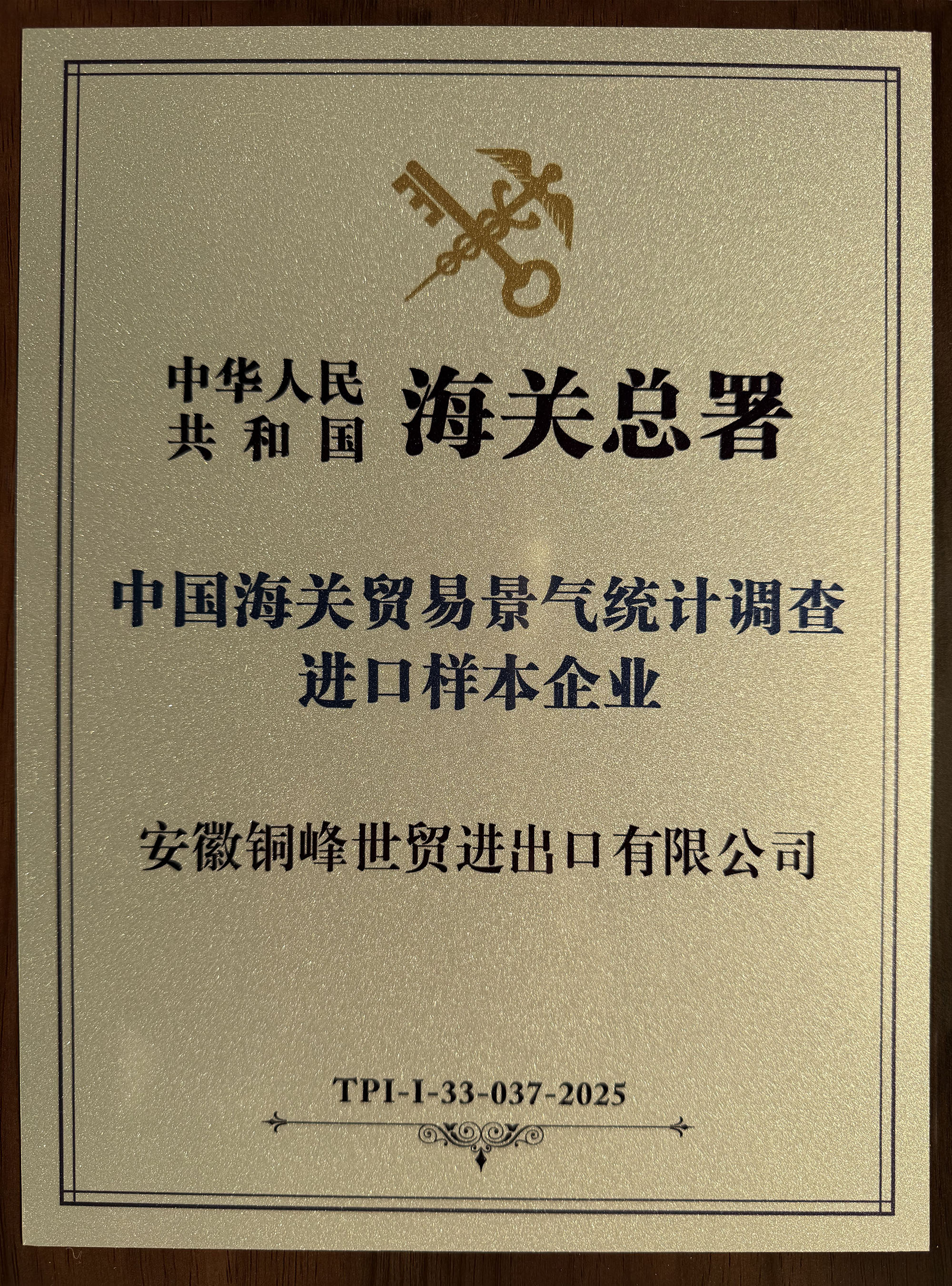 近日,公司全资子公司安徽英国威廉希尔公司官网世贸进出口有限公司凭借其卓越的进出口业绩、规范严谨的经营管理以及高质量的统计申报数据,成功获得海关总署授予的“中国海关贸易景气统计调查进口样本企业”荣誉称号。