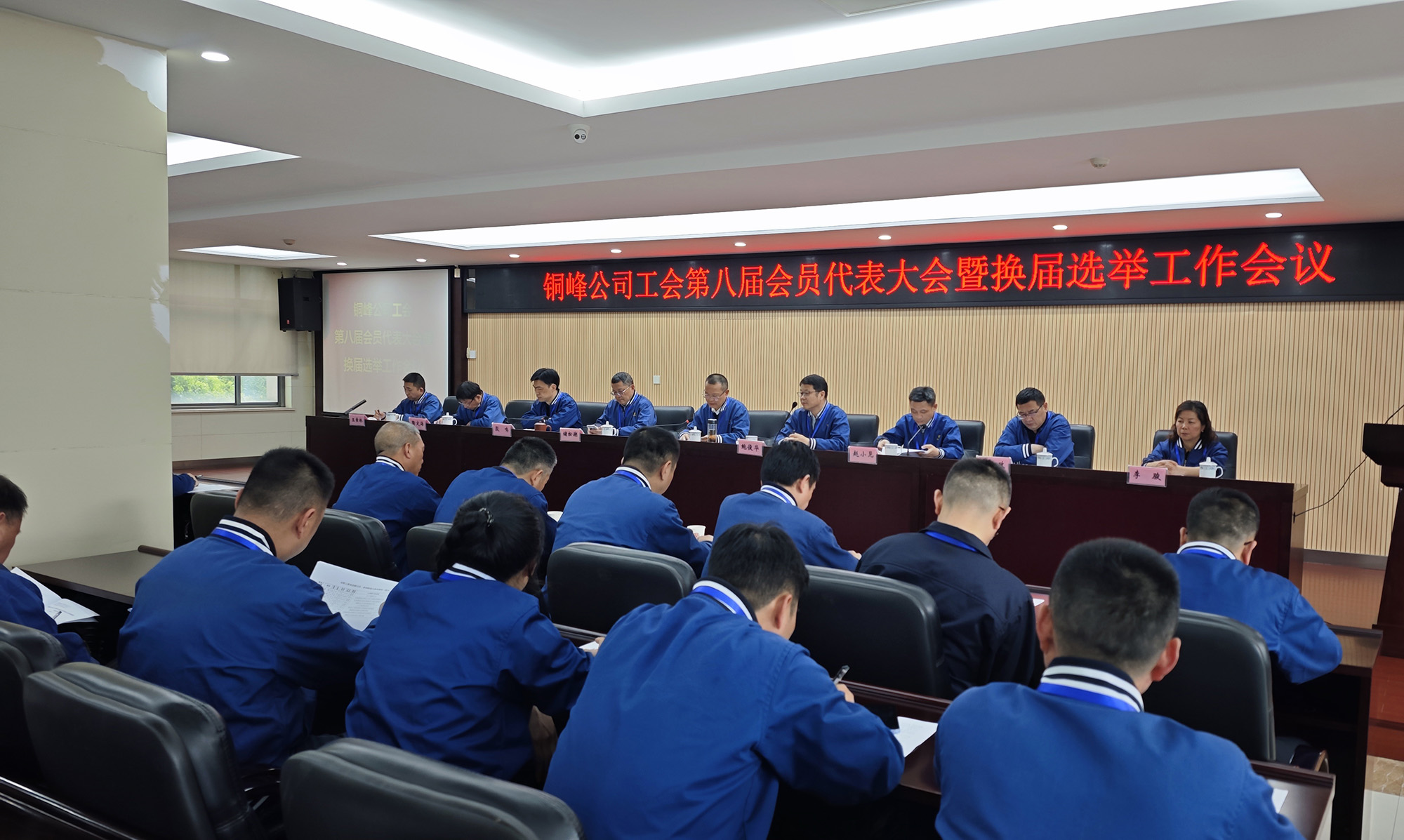 4 月 9 日,公司工会第八届会员代表大会暨换届选举工作会议在公司办公楼二楼职教室胜利召开,105名会员代表齐聚一堂、认真履职。公司党委书记、董事长黄明强出席并讲话,公司总经理鲍俊华等党政领导班子成员出席大会,副总经理、财务总监赵小见宣读市总工会和公司党委批复文件,公司党委副书记、新当选工会主席殷鸣主持会议。